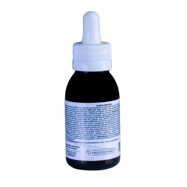 O Fluido Ionizável Peles Oleosas contém ativos que auxiliam no controle de oleosidade, na prevenção da acne, melhoram a textura e hidratação da pele e promovem a síntese de colágeno.