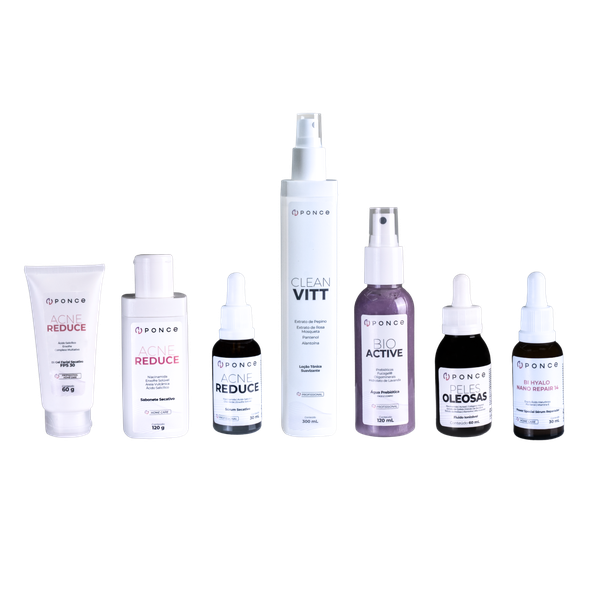 Protocolo completo desenvolvido para auxiliar no tratamento de peles oleosas e com acne leve a moderada (graus I e II). Formulado com ativos que promovem higienização profunda, equilíbrio da oleosidade, ação calmante e proteção solar, proporcionando resultados eficazes e seguros.