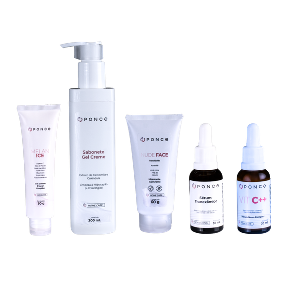Protocolo diário completo para cuidados em casa, indicado para peles com hiperpigmentações pós-inflamatórias. Desenvolvido para auxiliar na uniformização do tom da pele, clareamento gradual das manchas e proteção solar, mantendo a pele saudável e equilibrada.