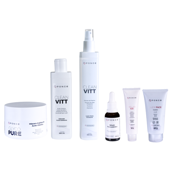 Tratamento completo e intensivo para auxiliar na uniformização do tom da pele, clareamento gradual de manchas e melhora da textura cutânea. Desenvolvido com ativos dermocosméticos de alta performance, este kit promove renovação celular, ação antioxidante, efeito calmante e proteção solar, oferecendo resultados visíveis em peles com melasma e outras hipercromias.