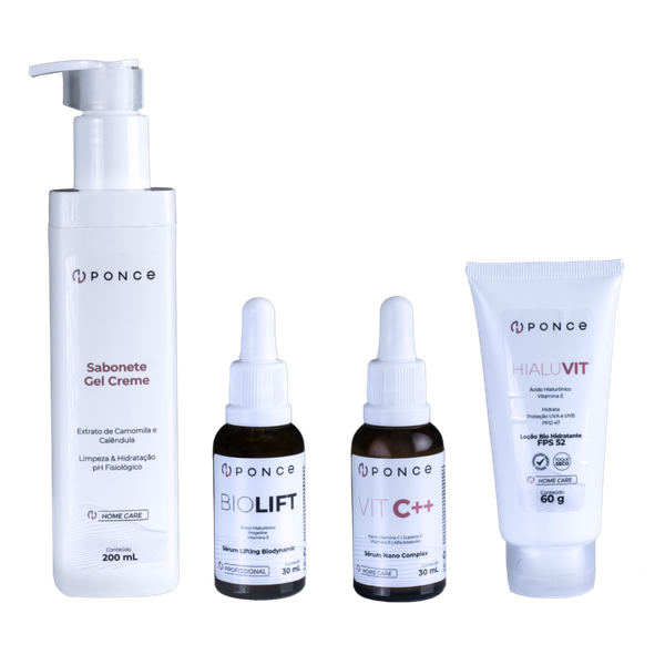 Protocolo diário completo para cuidados faciais em casa, indicado para peles maduras ou que necessitam de ação anti-idade. O kit foi desenvolvido para promover limpeza, hidratação profunda, efeito lifting e proteção solar, mantendo a pele saudável, revitalizada e luminosa.