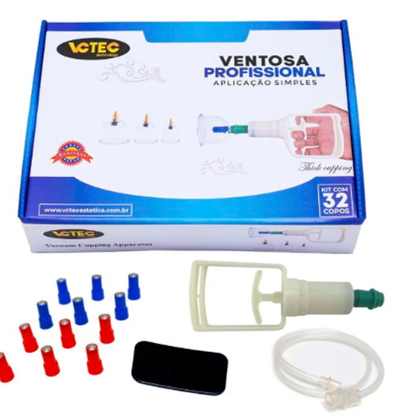 O kit profissional de ventosas VCTEC para ventosaterapia conta com 32 copos, sendo 6 modelos com medidas diferentes. Acompanha também 1 aplicador com prolongador, 1 raspador e 12 pinos magnéticos para ventosas que fazem toda a diferença na hora da aplicação.